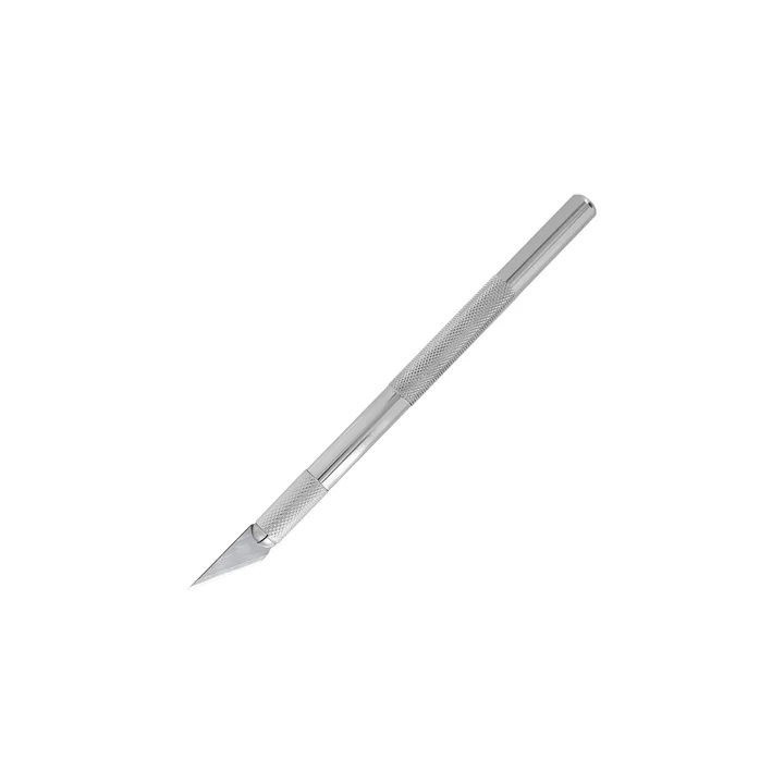 Aluminium 125mm (5") handle with #11 blade for fine angle cuts, carving, etching, piercing, scoring, scraping, scribing and trimming. This slim handle with its knurled grip is easy to work with allowing complete control when working on detailed, delicate tasks.